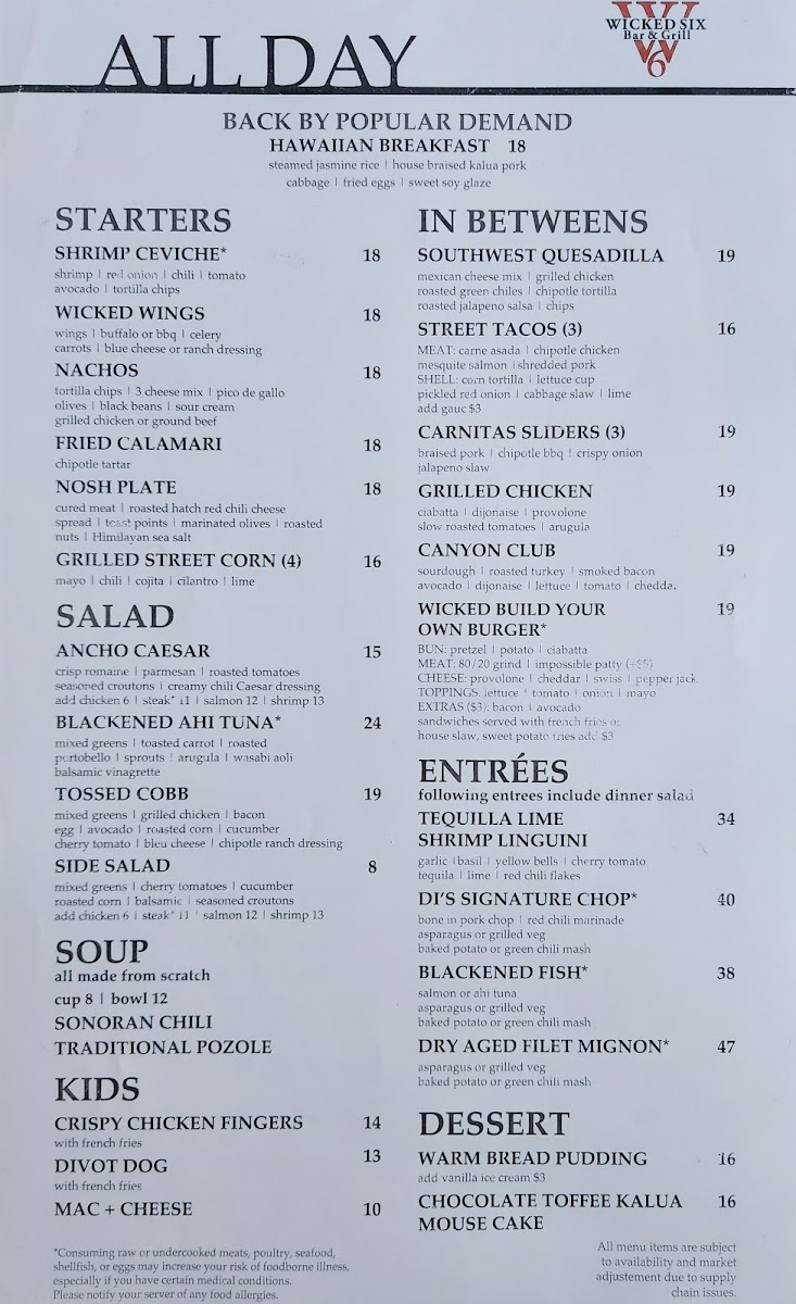 Wicked 6 Bar & Grill Menu